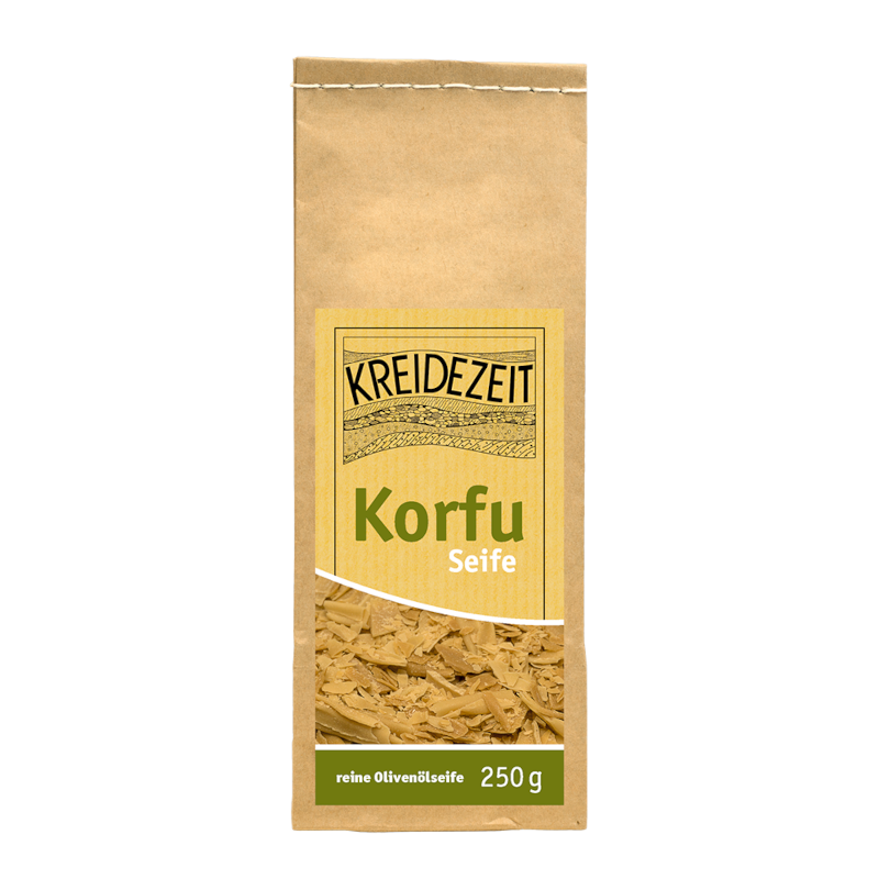 Korfu Seife ist eine reine Olivenseife, hergestellt in einer Manufaktur auf der griechischen Insel Korfu. In einem seit über 150 Jahren bewährten Verfahren wird sie handgesiedet nur aus regional erzeugtem Olivenöl, Natronlauge, Wasser und Meersalz. Ohne jeglichen Zusatz von Farb-, Konservierungs- und Duftstoffen. Mit Aufnahme dieser Seife in unser Produktsortiment möchten wir zum Erhalt sowohl der Manufaktur als auch des traditionellen Seifensiederhandwerkes beitragen. Korfu Seife wird schon seit Generationen als universeller Reiniger für Haushalt und Wäsche, zur Körperpflege und zum Filzen von Wolle verwendet. In unserem Sortiment dient sie als Reiniger für geölte oder gewachste Oberflächen, als Reiniger für ölverschmutzte Pinsel und Rollen und zur Handreinigung. So ist sie angenehm mild zur Haut und pflegt auch empfindlichere Flächen wie z. B. Marmorböden und Fugen.