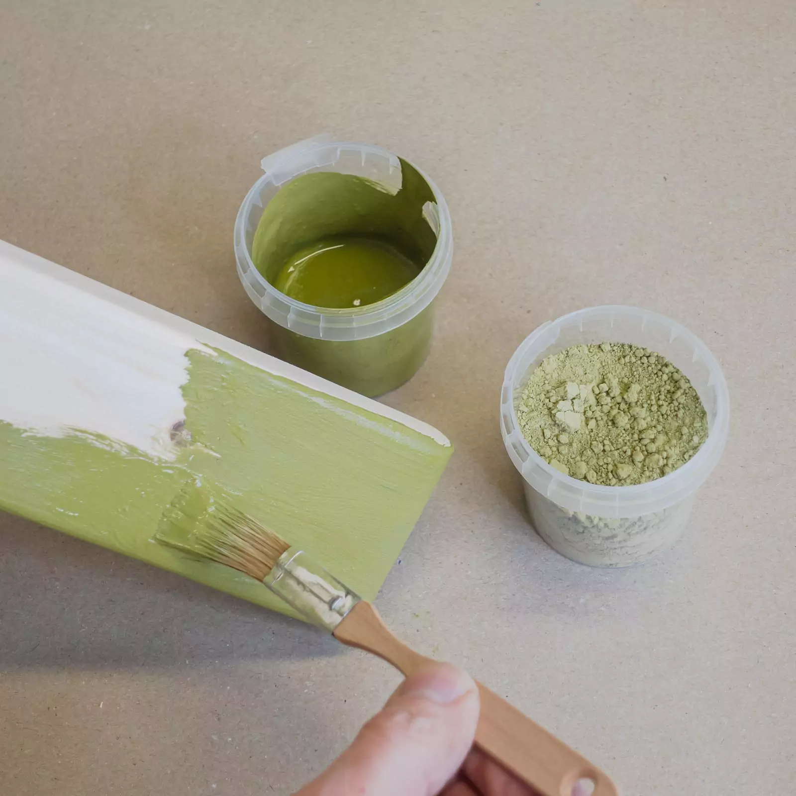 KREIDEZEIT Kaseinfarbe ist eine matte, schnell trocknende und gut deckende Farbe für unbehandeltes Holz im Innenbereich. Soll die Oberfläche vor Verschmutzungen geschützt werden, ist eine nachfolgende Behandlung mit Öl oder Wachsprodukten oder zB KREIDEZEIT Arbeitsplattenöl lösemittelfrei (Art. 4206) erforderlich. Dies führt zur Farbvertiefung.