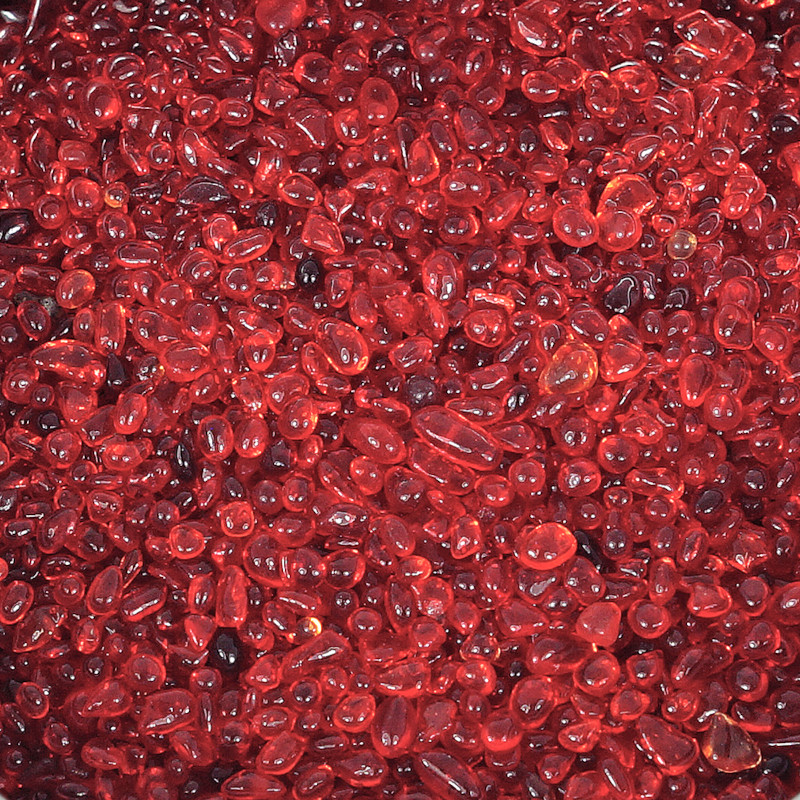 Effektvoller Zuschlag aus durchgefärbtem Glas. Rundliche Kiesel ohne scharfe Kanten in 6 transparenten Farben und