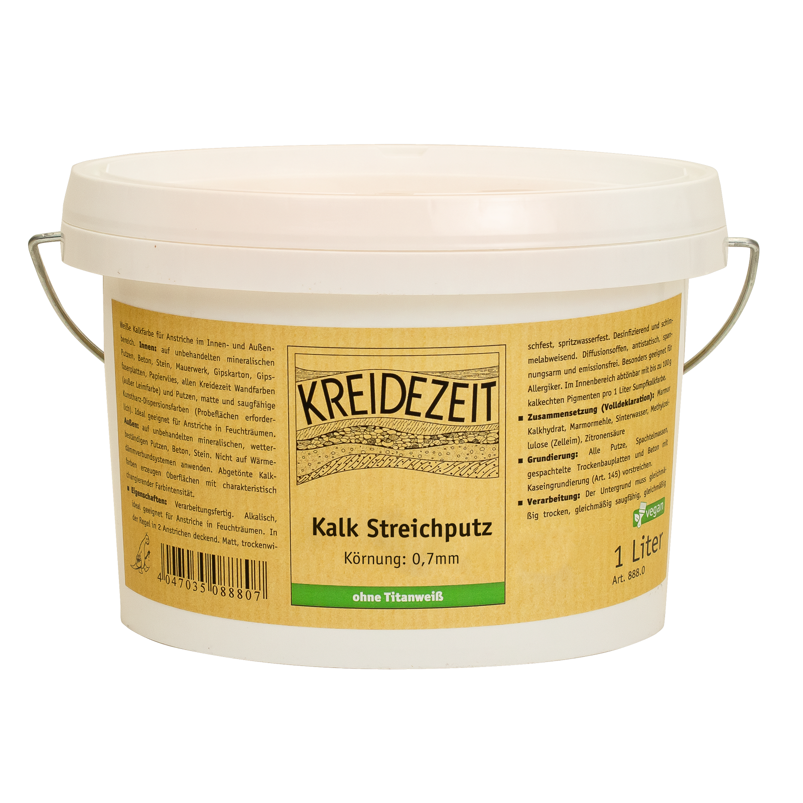 Der Kreidezeit Kalk Streichputz ist die ideale Lösung für alle, die eine lebendige, strukturierte Wandoberfläche mit den erstklassigen Eigenschaften eines reinen Sumpfkalk-Anstrichs verbinden möchten. Dank seiner Körnung von 0,7 mm (weißer Marmorsand) erzeugt er eine ausdrucksstarke Putzoptik, die kleinen Rissen und Strukturunterschieden im Untergrund den Kampf ansagt.