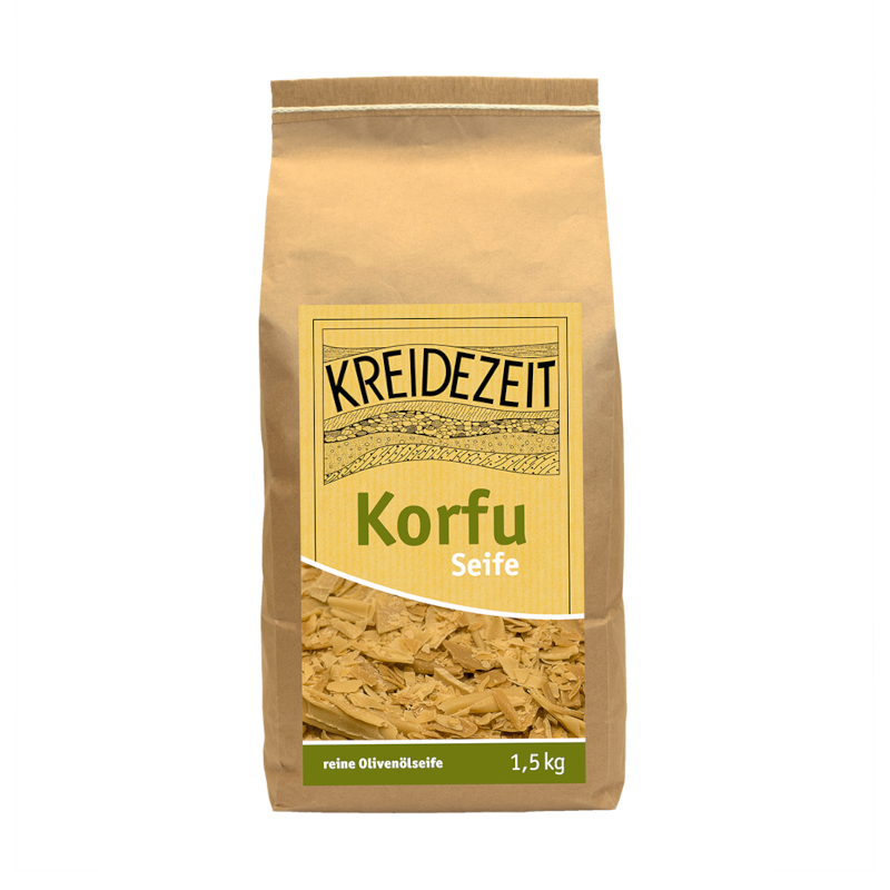 Korfu Seife ist eine reine Olivenseife, hergestellt in einer Manufaktur auf der griechischen Insel Korfu. In einem seit über 150 Jahren bewährten Verfahren wird sie handgesiedet nur aus regional erzeugtem Olivenöl, Natronlauge, Wasser und Meersalz. Ohne jeglichen Zusatz von Farb-, Konservierungs- und Duftstoffen. Mit Aufnahme dieser Seife in unser Produktsortiment möchten wir zum Erhalt sowohl der Manufaktur als auch des traditionellen Seifensiederhandwerkes beitragen. Korfu Seife wird schon seit Generationen als universeller Reiniger für Haushalt und Wäsche, zur Körperpflege und zum Filzen von Wolle verwendet. In unserem Sortiment dient sie als Reiniger für geölte oder gewachste Oberflächen, als Reiniger für ölverschmutzte Pinsel und Rollen und zur Handreinigung. So ist sie angenehm mild zur Haut und pflegt auch empfindlichere Flächen wie z. B. Marmorböden und Fugen.