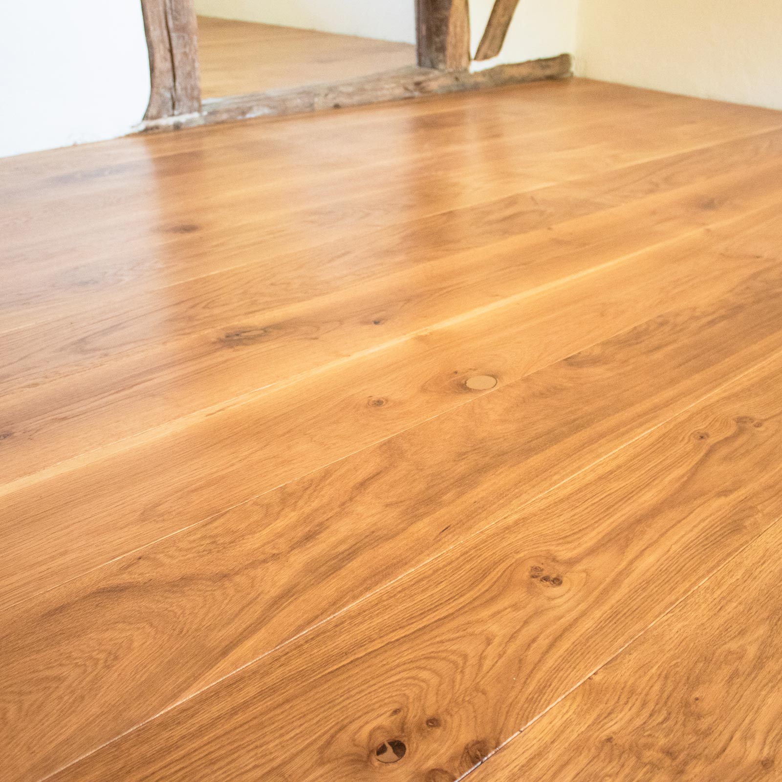 Oliven Pflegeseife 1:3 mit warmem Wasser verdünnen. Die warme Seifenlösung mit einem geeigneten Pinsel auf den unbehandelten Holzfußboden auftragen, mit einem Schrubber einarbeiten und trocknen lassen. Vorgang ggf. wiederholen bis gewünschtes Ergebnis erreicht ist, bzw. bis die Oberfläche von einem hauchfeinen Seifenfilm überzogen ist. Der Seifenauftrag ist je nach Abnutzung von Zeit zu Zeit zu wiederholen, um ausreichenden Schutz für das Holz zu gewährleisten.